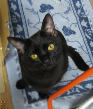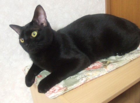 子猫の時の怪我の後遺症で、首が少し傾いた感じ