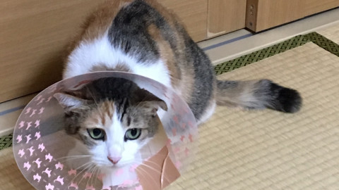 9/27に左前足の手術をしました。エリカラが着いた状態で自宅から脱走しました。