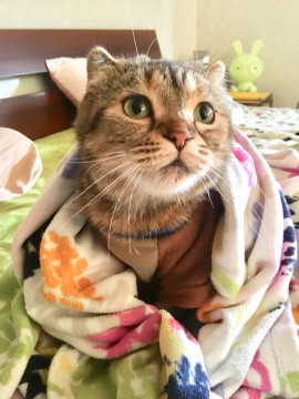 失跡後18時間で開けておいた玄関から自分で帰ってきました。これまで出たくてもちょっとしか出してもらえず、初めての散歩を楽しんだかのようにケロリとした顔して戻ってきました。どうもお騒がせしました。