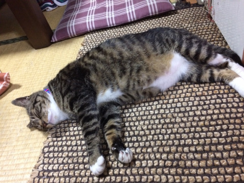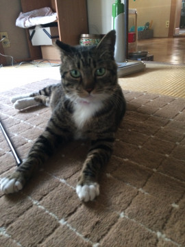 年齢 | 捨て猫で飼ったので不確実。みー5才。たび | ||