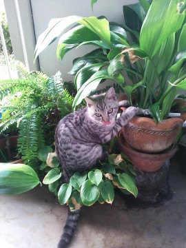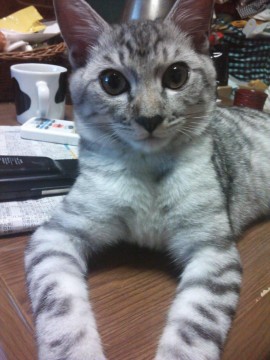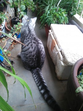 雑種ですがキレイなグレーの縞模様があり太くて長い尻尾です。