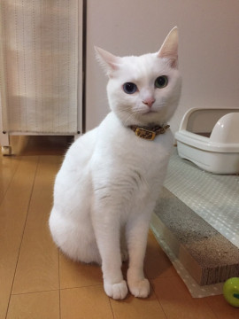 赤地に白模様の首輪をしています。怖がりで人見知りします。体重4キロぐらいです。