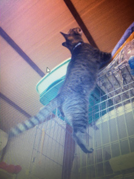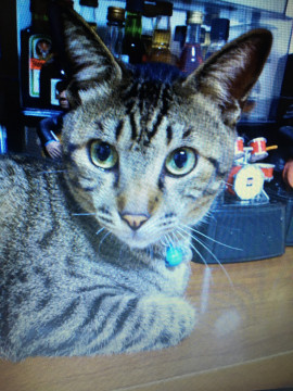 キジトラの男の子。去勢済み。元々野良猫だった為、捕獲は難しいかもしれません。尿路結石ができやすい体質でロイヤルカナンのストルバイト用の餌を食べています。
