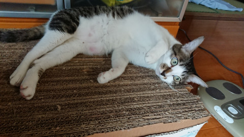 細めの猫ですがお腹はタプタプ(ルーズスキン)です。