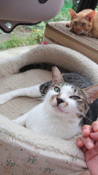 雄ですが子猫に乳を吸わせていた事があるので、乳首が少し目立ちます。