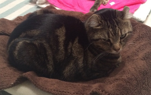 アメリカンカールのオス猫で愛称はチビ(マイクロチップに登録されている名前はコジロウ)です。