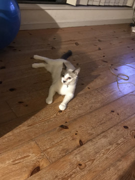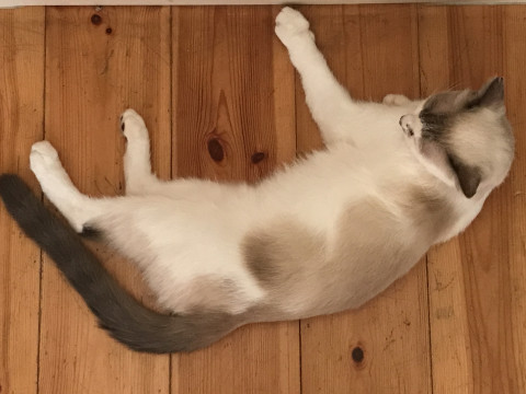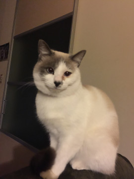 薄いクリーム色で耳と尻尾が焦げ茶色です。