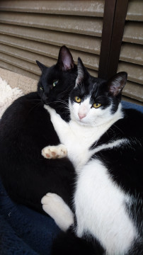 三兄弟を家の自転車置き場に小屋を置き去年夏から外猫として飼っています。