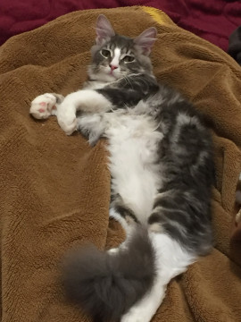 長毛 グレーと黒の斑+白