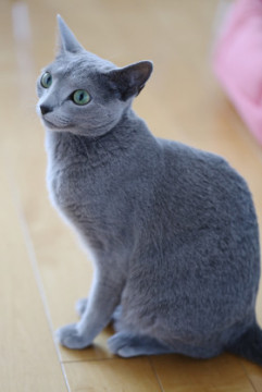 綺麗なロシアンブルーです。首輪はしていません。去勢もしていないので、たまたまも付いてます。