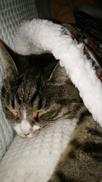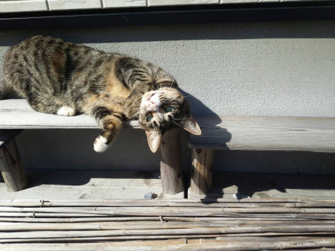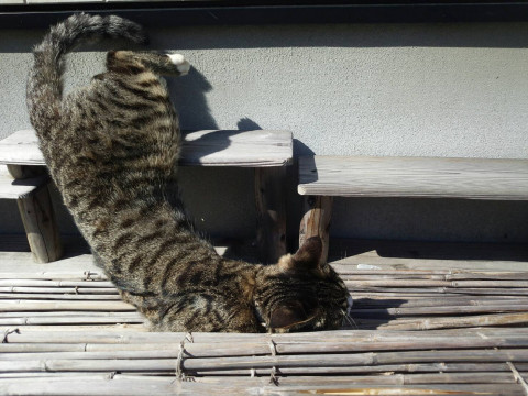 尻尾は、まっすぐで細め。右前足と後ろ足のつま先が真っ白でつま先だけの靴下をはいたみたいに見えます。