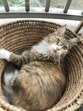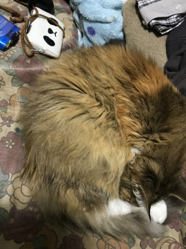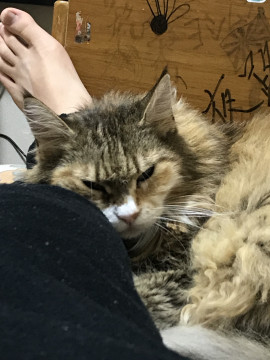 メインクーンで毛は長く足は白いです体もでかいです