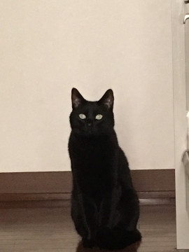 全身黒色ですが、日の当たり方によって茶色に見えることもあります。体重は5キロぐらい、目は薄い緑色でしっぽは長いが手で触ると先の方が鍵になっています。首輪等目印になるものはつけていません。