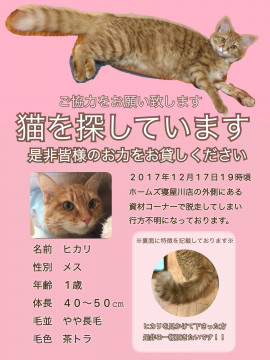 ご丁寧にお知らせ下さいまして、本当にありがとうございます^^もしまた似た猫を発見して頂けました際は是非ご連絡のお力添えを頂けますと幸いです^^宜しくお願い致します^^