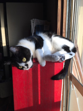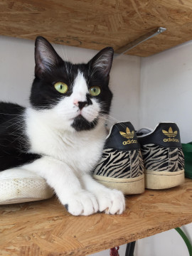 ・白黒(ハチワレでアゴの左の部分が黒いです)