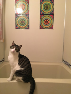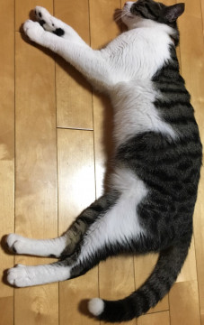 しっぽの先が白いです。ハチワレサバトラ白です。