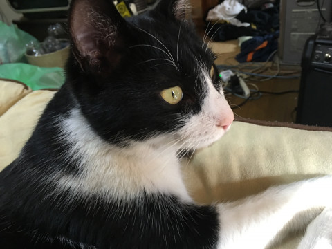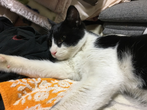白黒のハチワレで、少し目が寄ってます!