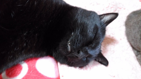 真っ黒い黒猫です。とても怖がりで飼い主以外触らせません。チビーと呼んだらニャーと鳴きます。