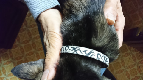 唐草模様?の首輪をしていました。監察番号はありませんでした。