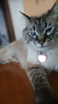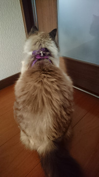脱走時ピンクの迷子札と鈴がついた赤い首輪をつけています。