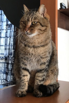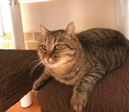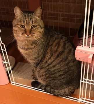 大人しく人懐っこいキジトラ柄のオス猫です。