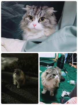 さば白の長毛種です。非常に人馴れしています。首輪なし、マイクロチップ埋め込み不明。