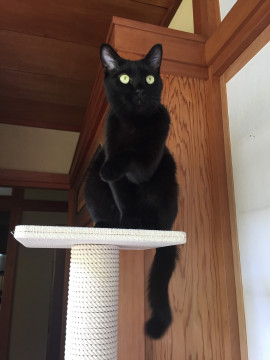 お腹が減っていると足にスリスリしてきますが、基本的にクールで怖がりの猫です。