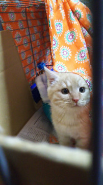 ふわふわの毛並みで鼻筋がすっと通ったイケメンだけど少しお目めが小さい薄い茶とらの猫の男の子です。首輪、去勢してません。