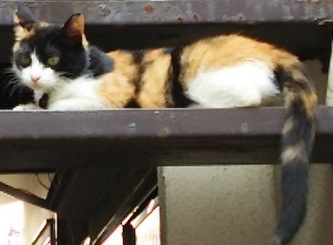 成猫ですが小型で白茶黒がはっきりしていてシッポが黒っぽく長いです。