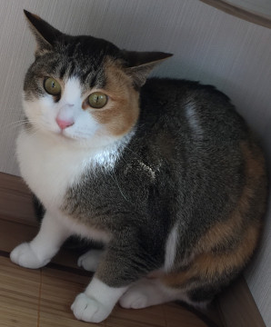 デブで とてもかわいい三毛猫を長久手市東浦と城屋敷の境目で保護しました。知らない人を警戒します。可愛い声で鳴きます。ピンク色の鼻。デリケートで寂しがりや。ものすごくおとなしくてお行儀がいいです。落ち込んでしまって、食欲が全くないです。元の飼い主を求めて、昼も夜も鳴き続けています。元の飼い主に非常に愛着を感じている猫で、全く心を許さないです。影に隠れて、知らない人を警戒し、自分に寄ってくるものを威嚇し、よせつけません。
