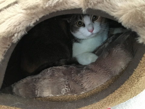 三毛猫!可愛いくてぽっちゃりした女の子。ピンク色の鼻。長久手市城屋敷にあるコーポラス桂山の駐車場で2月9日夕方6時半頃保護。田村歯科医院のそば。ノミも全くいないきれいな猫。おびえて、落ち込み、全く食べようとしません。かわいい声で鳴きます。かわいそうです。大至急連絡ください!