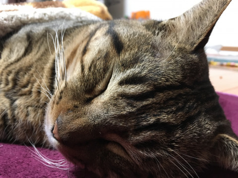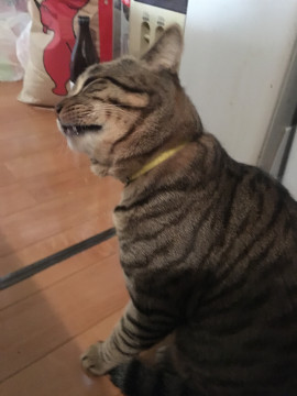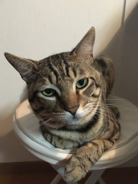 右耳の下に傷があり毛が薄い。鼻の頭にも黒い傷があり