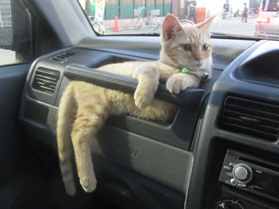2月18日(日曜日)の午後4時頃、ボランティアさんに見せようと将軍塚に連れて行ったところ、将軍塚にいる猫に追われて逃げ出し、駐車場で見失いました。周囲の茂みを捜しましたが、いつも呼べば直ぐに出てくるのに、1時間経っても見つかりません。そこで、駐車中の車のボンネットに逃げ込んだ可能性に気付きました。