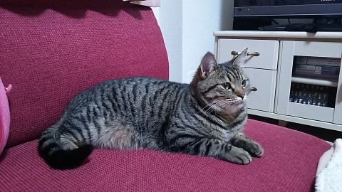 キジトラでしっぽはまっすぐ長いです