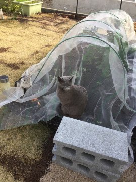 囲っていた庭で隙をみて逃走し、近所の野良猫を追いかけていた模様