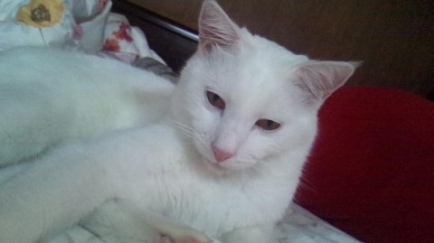 全身真っ白の女の子 避妊手術済み 首輪はしていません。