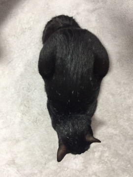 背中に少し白い毛がまばらに生えている。