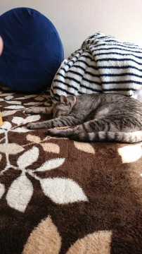 後ろの左足を昔、怪我したので、少しビッコをひいてます。ピンクの、首輪鈴つきを、してます。