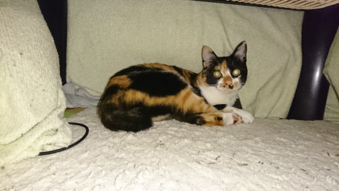 普段は外に出さず家猫として飼っているのと、以前に首輪が猿ぐつわの状態になり怪我をしたため、首輪をしていません。