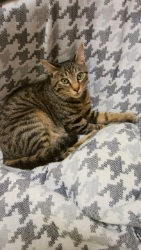 キジトラ。やせ型。体重、約3.5キロ。去勢済み。