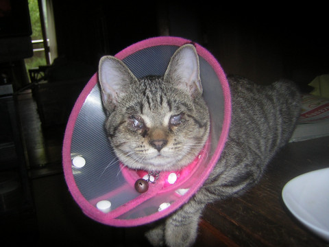 いなくなった時はエリザベスカラーしていましたが、外れているかもしれません。