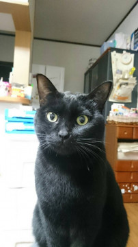 赤い首輪をした黒猫です。人見知りする方では無いと思いますが、捕まえようとすると逃げるかも‥‥。