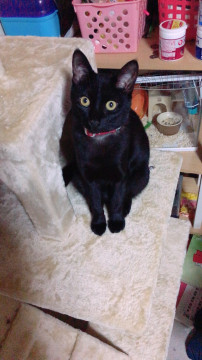 全体的に黒いですが、お腹に少しだけ白い毛が混じっています。