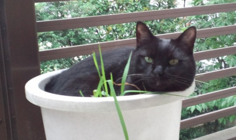 友人宅に連れて行った時に鉢が気に入ったらしく入ってたので撮らせて貰った物です。