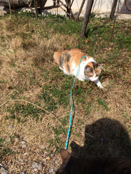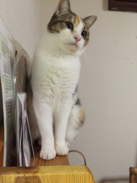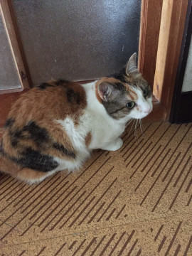 かぎ尻尾の三毛猫ちゃんです。