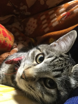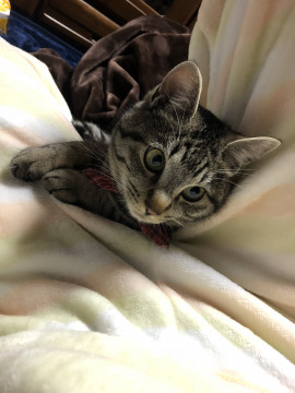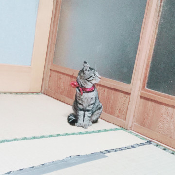 避妊済み,鈴のついた赤い首輪,小柄,ギジトラ,真っ黒な肉球,長いしっぽ