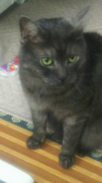 若干縞模様のある黒猫です。