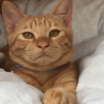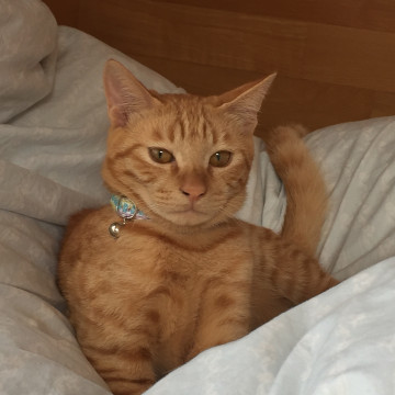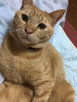 水色・黄・赤・白の糸で織られた首輪をしています(現在、鈴は付いていません)