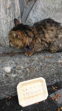青い首輪をしているのでもと飼い猫だったと思います。