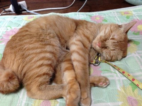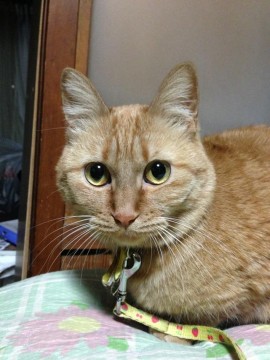 メスの茶トラ、体長30cmくらいでしっぽが短い。